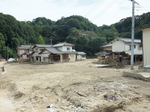土石流により被害を受けた被災家屋の家財搬出入、瓦礫の撤去、泥のかき出し作業などを行いました。