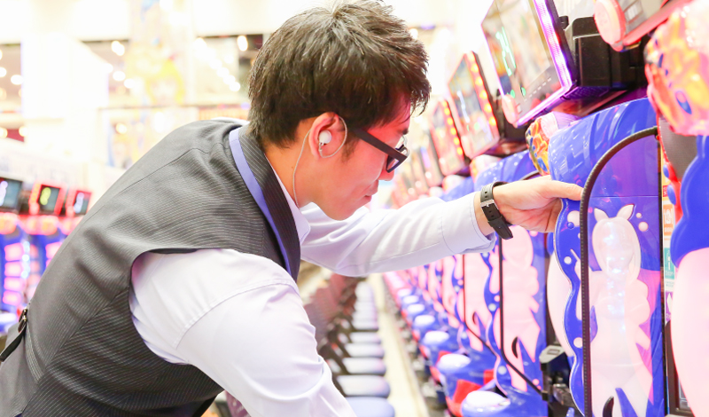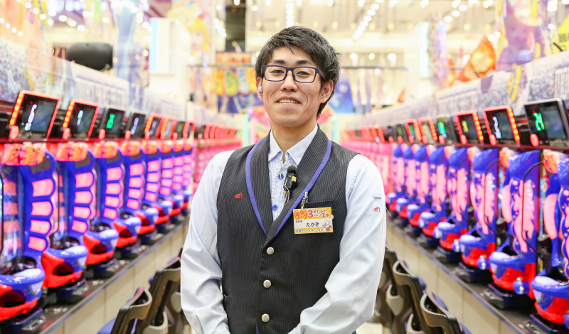 最初は覚えることが多く大変でしたが、先輩方のご指導もあり今は楽しく働けています。現在は新規オープンした天草本渡店でオープニングスタッフから勤務しています。台のメンテナンスや一緒に働いてくれるスタッフの研修等も担当しています。